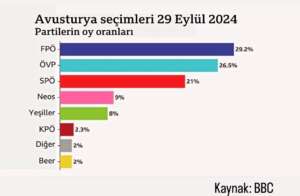 Avusturya’da 29 Eylül tarihinde yapılan Avusturya Parlamento seçimlerinin kazananı %29.2’lik oy ile aşırı sağcı Özgürlük Partisi (FPÖ) oldu. FPÖ, 9 Haziran 2024’te yapılan Avrupa Parlamentosu (AP) seçimlerinde de ilk kez Avusturyalıların en çok oy verdiği parti olmuştu.